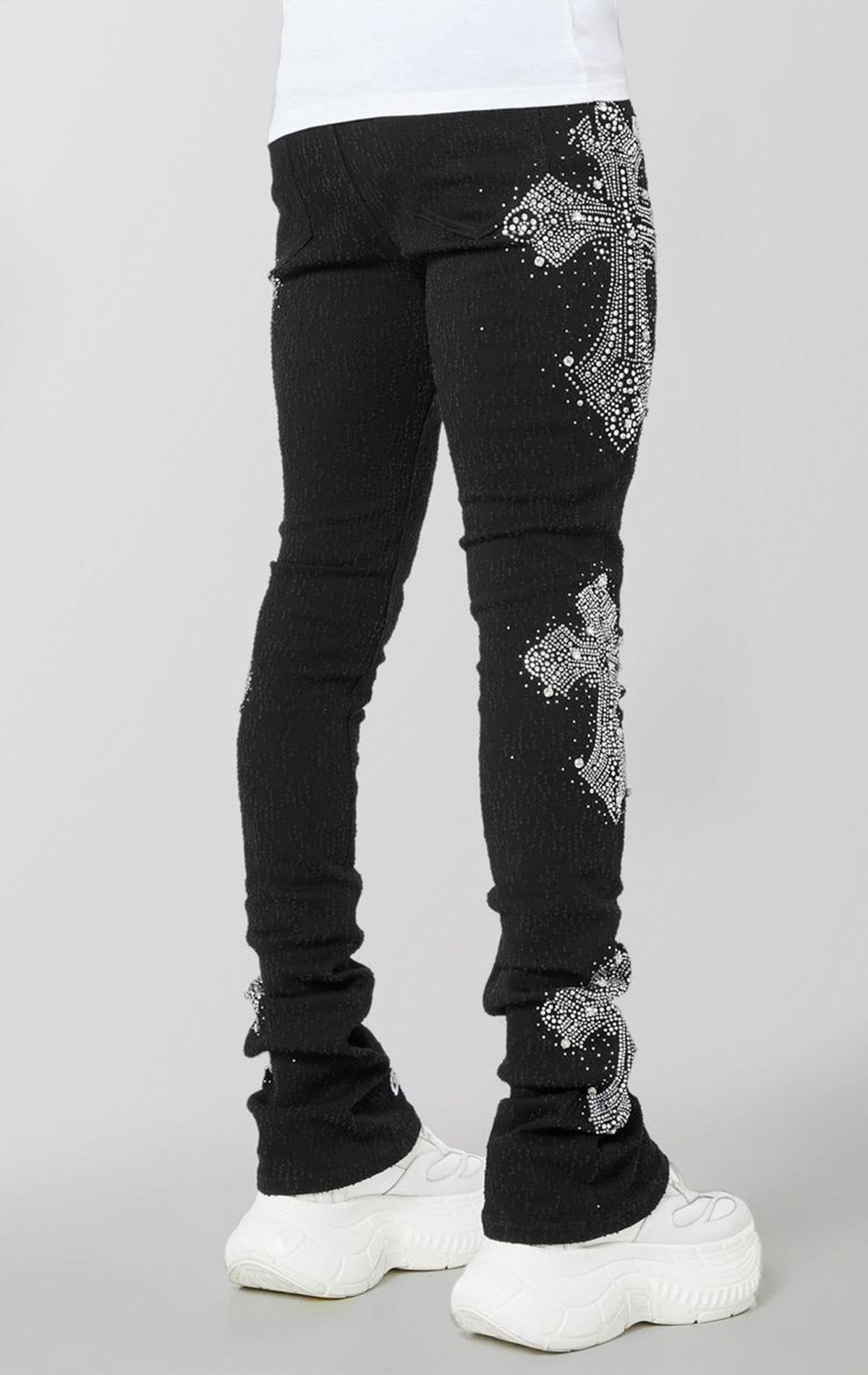 Obsidian Blk Distressed Cross Denim